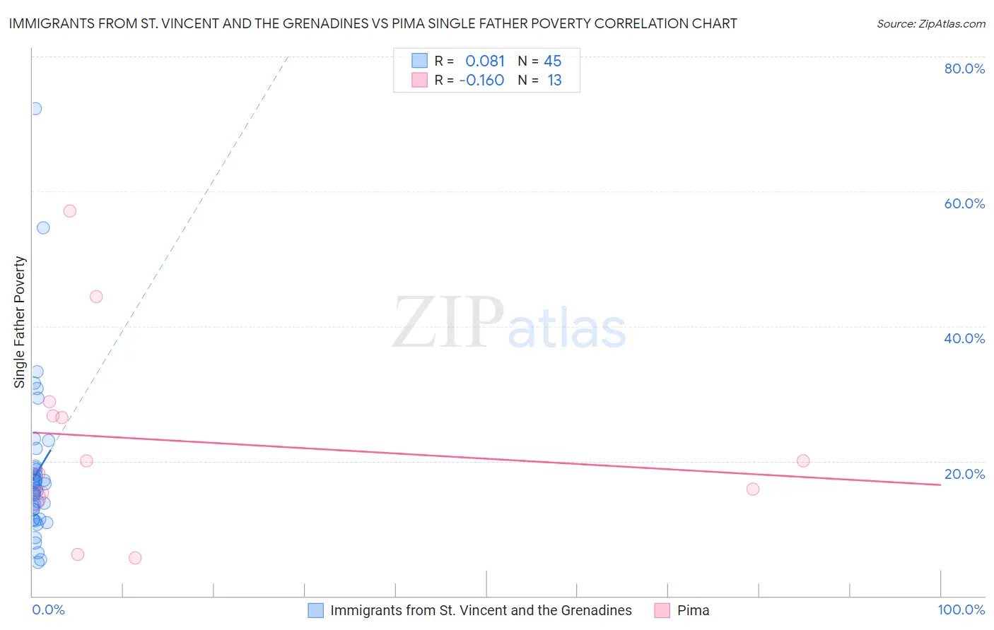 Immigrants from St. Vincent and the Grenadines vs Pima Single Father Poverty Correlation Chart