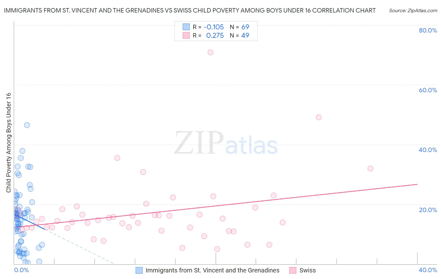 Immigrants from St. Vincent and the Grenadines vs Swiss Child Poverty Among Boys Under 16 Correlation Chart
