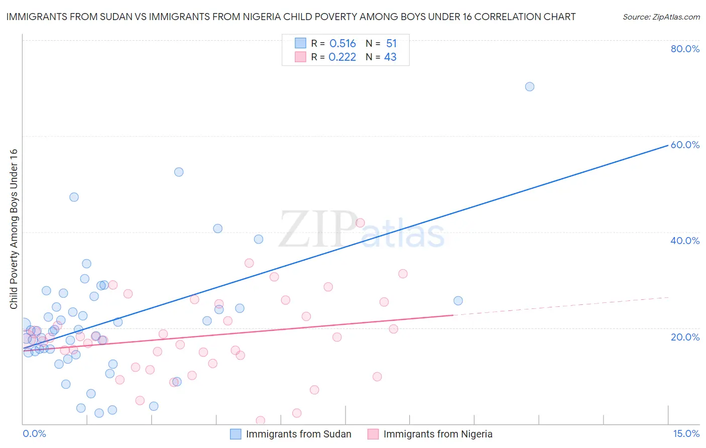 Immigrants from Sudan vs Immigrants from Nigeria Child Poverty Among Boys Under 16 Correlation Chart