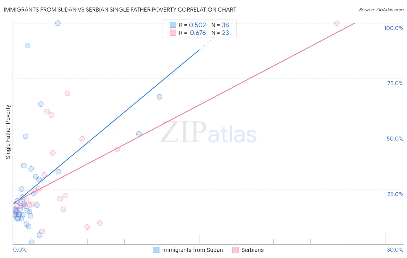 Immigrants from Sudan vs Serbian Single Father Poverty Correlation Chart
