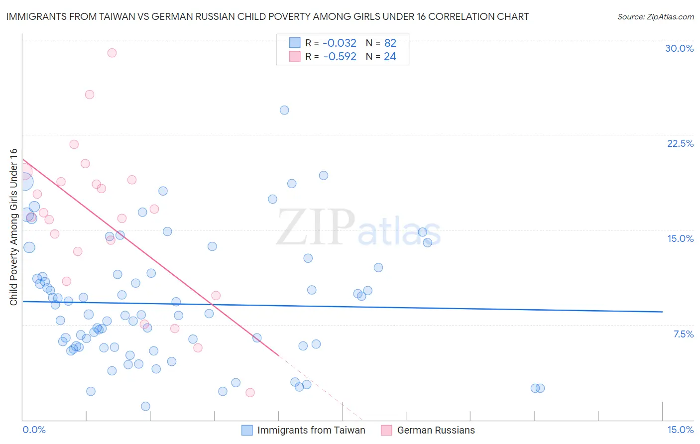Immigrants from Taiwan vs German Russian Child Poverty Among Girls Under 16 Correlation Chart