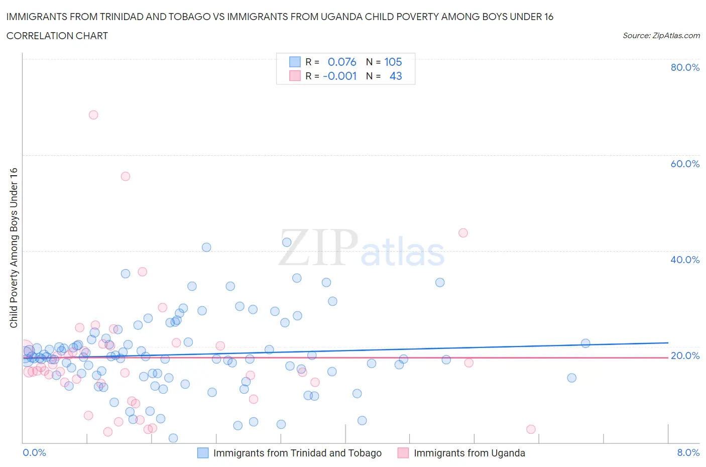 Immigrants from Trinidad and Tobago vs Immigrants from Uganda Child Poverty Among Boys Under 16 Correlation Chart
