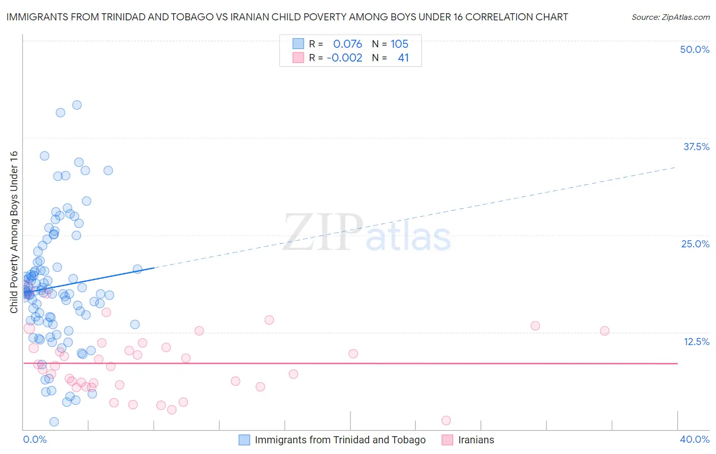 Immigrants from Trinidad and Tobago vs Iranian Child Poverty Among Boys Under 16