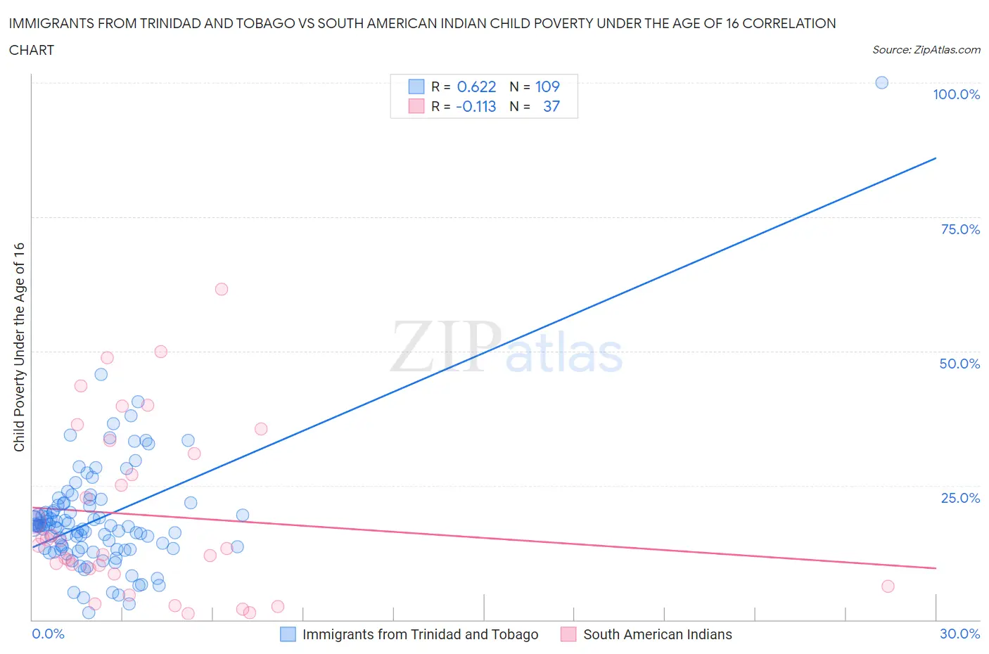 Immigrants from Trinidad and Tobago vs South American Indian Child Poverty Under the Age of 16 Correlation Chart