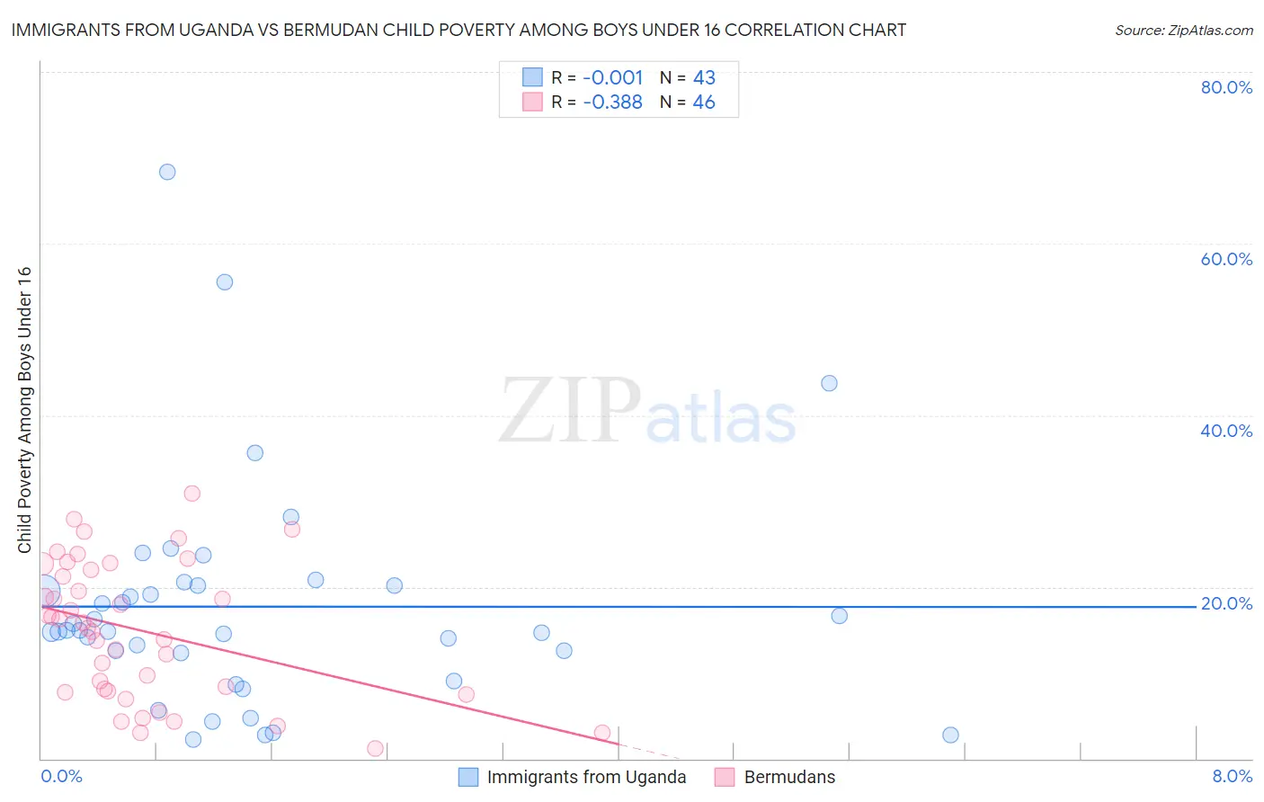 Immigrants from Uganda vs Bermudan Child Poverty Among Boys Under 16 Correlation Chart