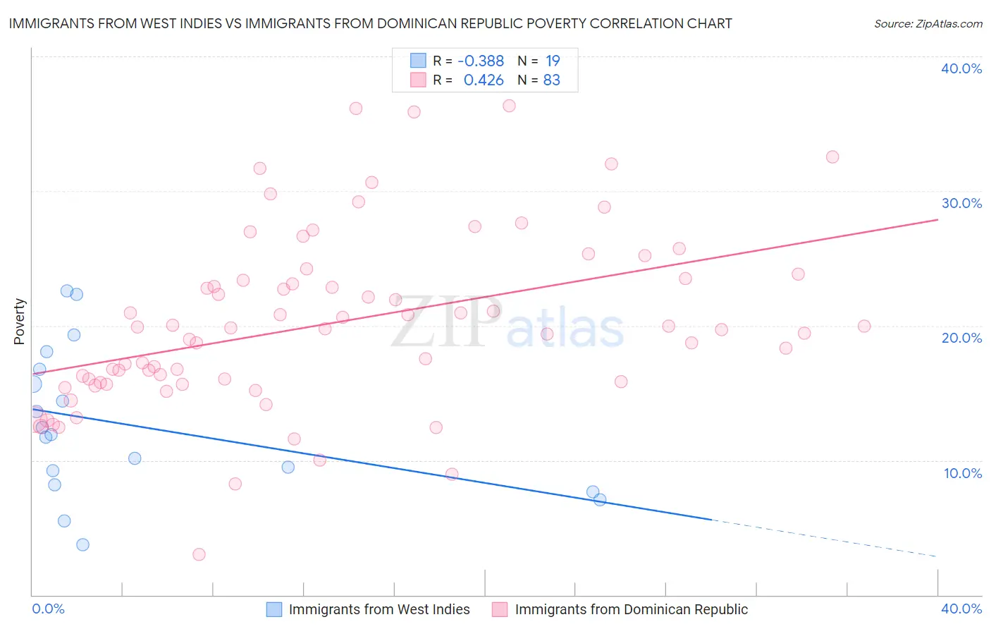 Immigrants from West Indies vs Immigrants from Dominican Republic Poverty Correlation Chart