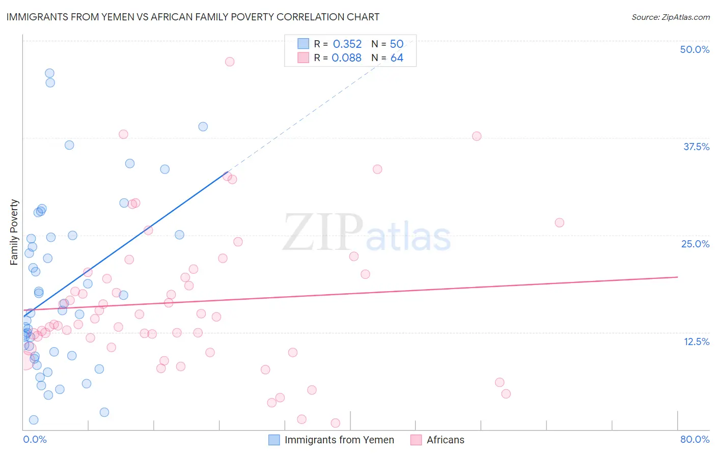 Immigrants from Yemen vs African Family Poverty Correlation Chart