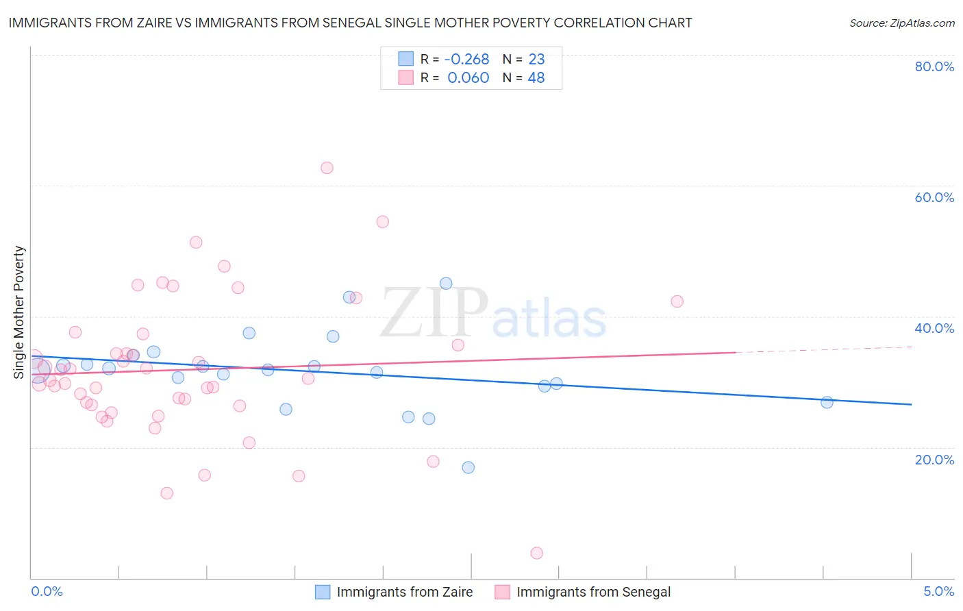 Immigrants from Zaire vs Immigrants from Senegal Single Mother Poverty Correlation Chart