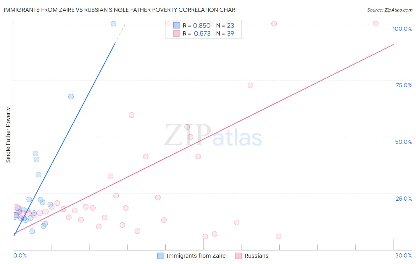 Immigrants from Zaire vs Russian Single Father Poverty Correlation Chart