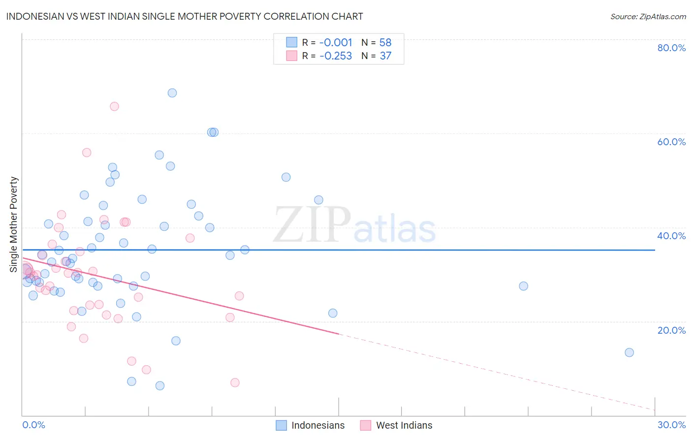 Indonesian vs West Indian Single Mother Poverty Correlation Chart