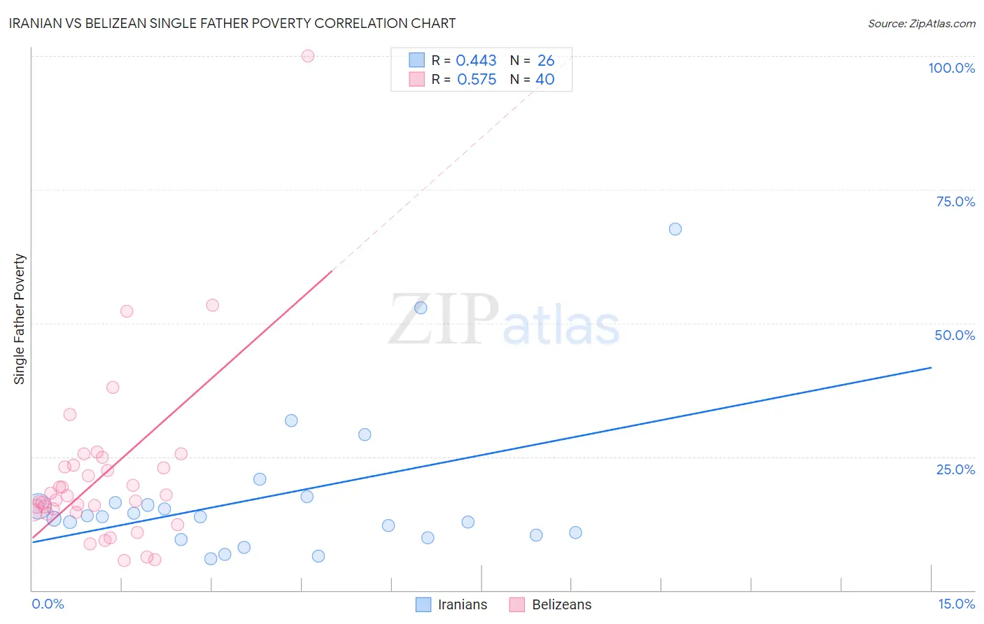 Iranian vs Belizean Single Father Poverty Correlation Chart