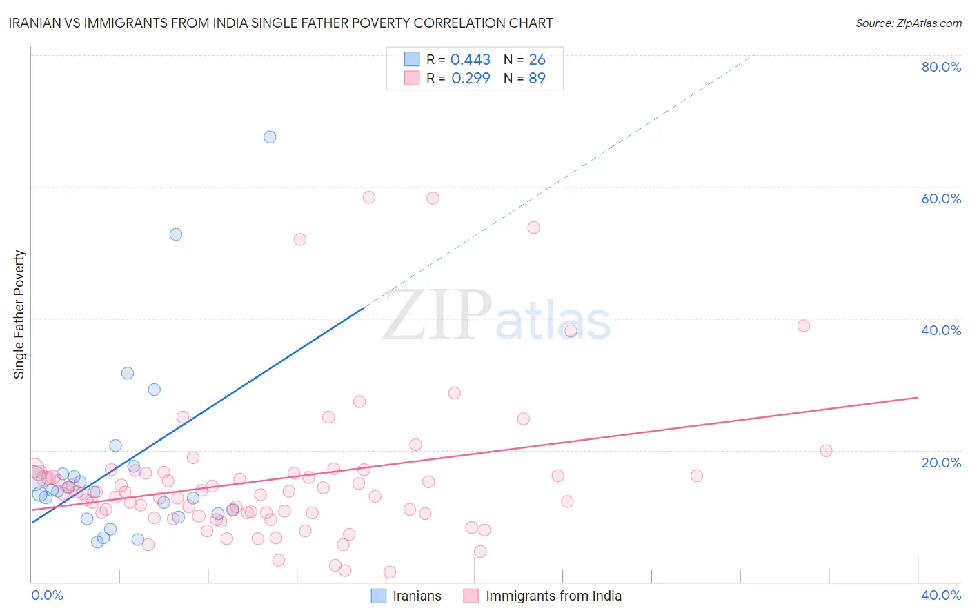 Iranian vs Immigrants from India Single Father Poverty Correlation Chart