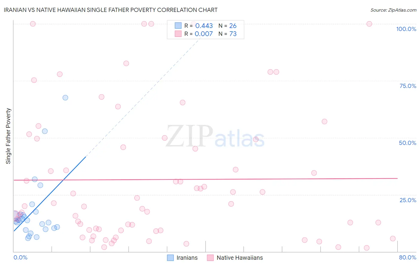 Iranian vs Native Hawaiian Single Father Poverty Correlation Chart