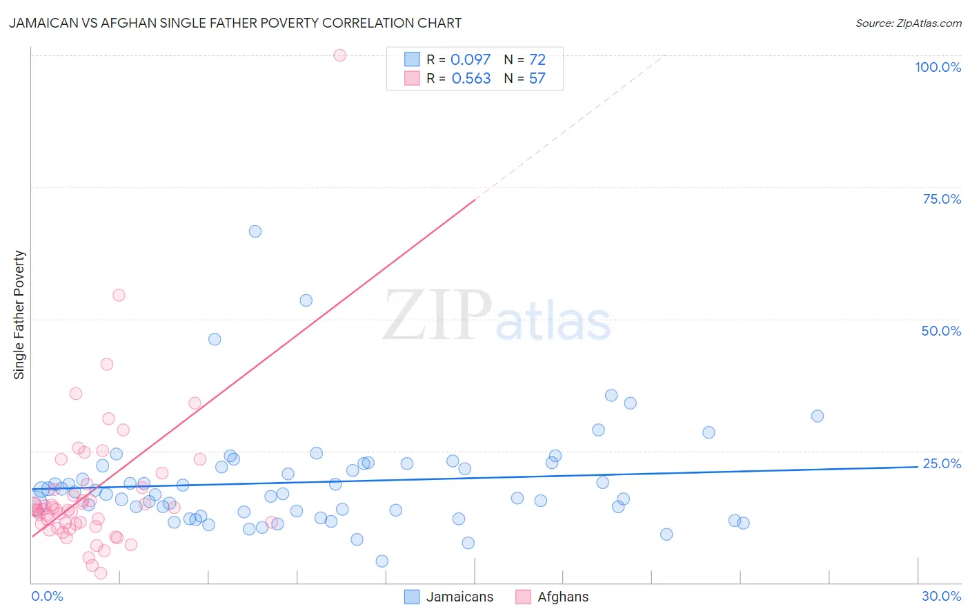 Jamaican vs Afghan Single Father Poverty Correlation Chart