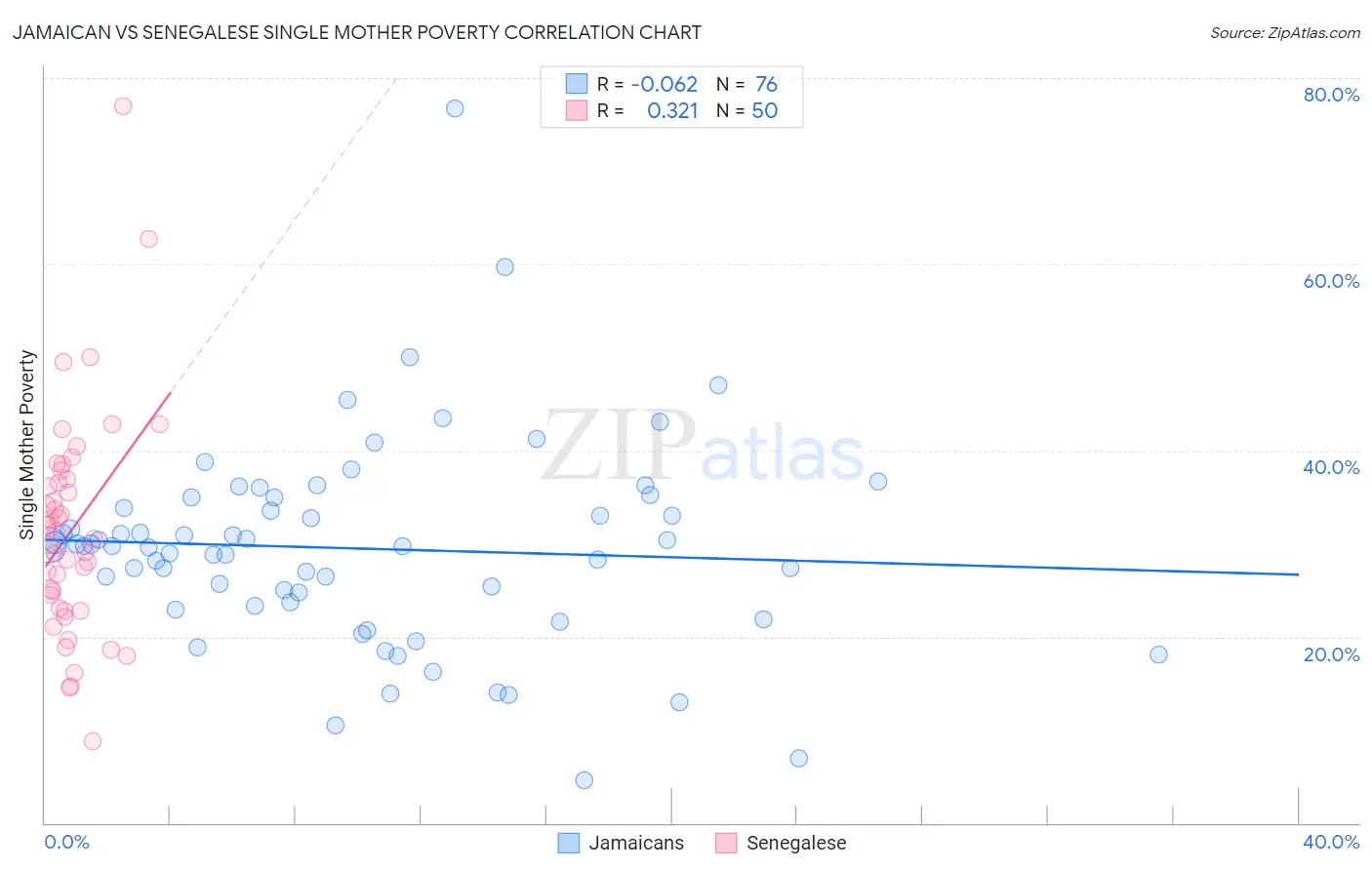 Jamaican vs Senegalese Single Mother Poverty Correlation Chart