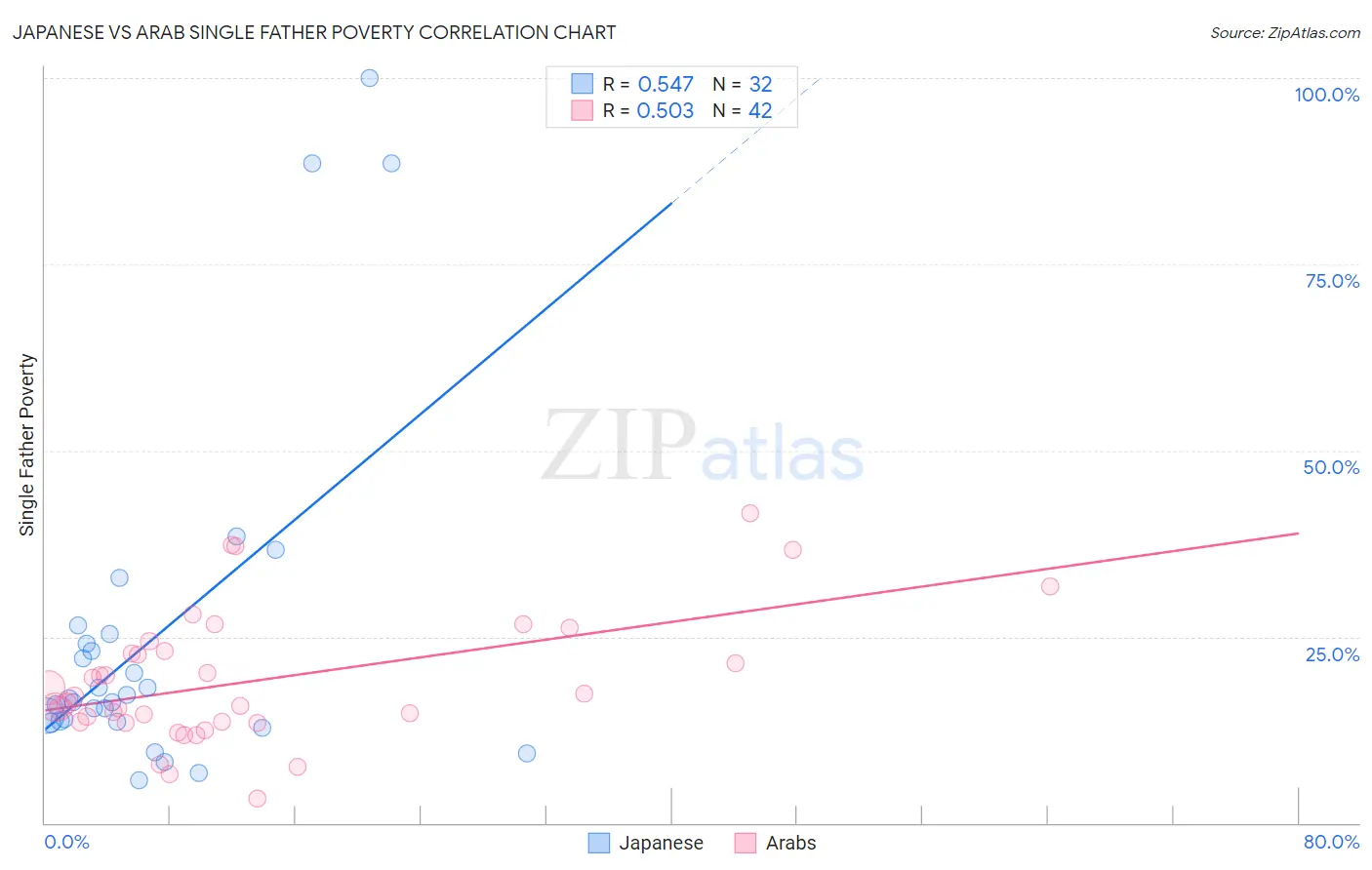 Japanese vs Arab Single Father Poverty Correlation Chart