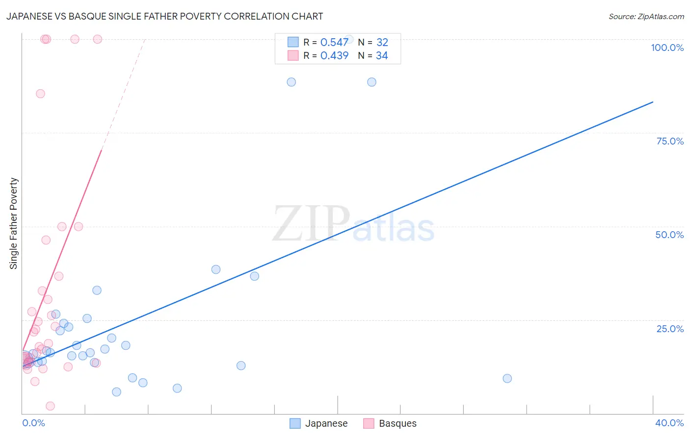 Japanese vs Basque Single Father Poverty Correlation Chart