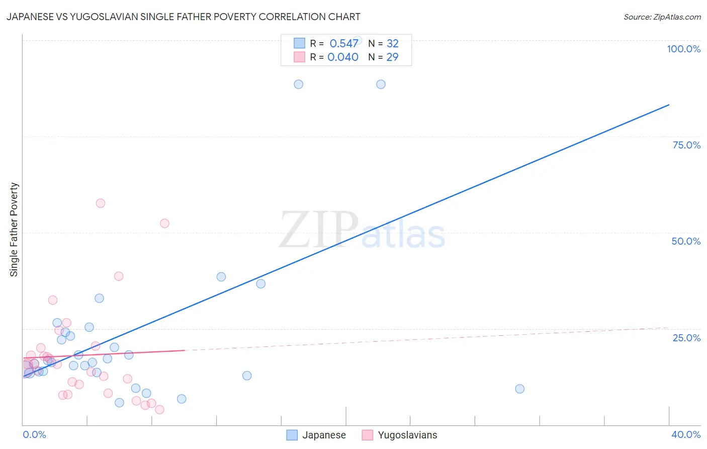 Japanese vs Yugoslavian Single Father Poverty Correlation Chart