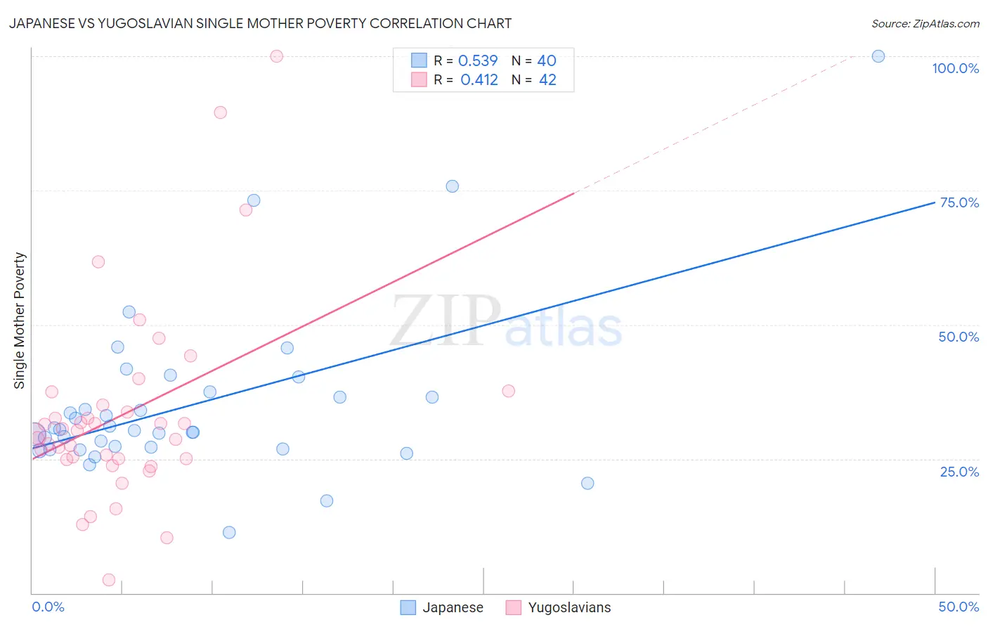 Japanese vs Yugoslavian Single Mother Poverty Correlation Chart