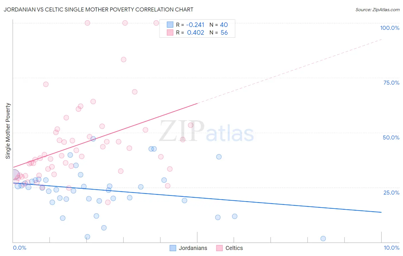 Jordanian vs Celtic Single Mother Poverty Correlation Chart