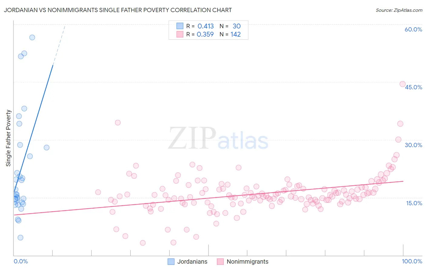 Jordanian vs Nonimmigrants Single Father Poverty Correlation Chart