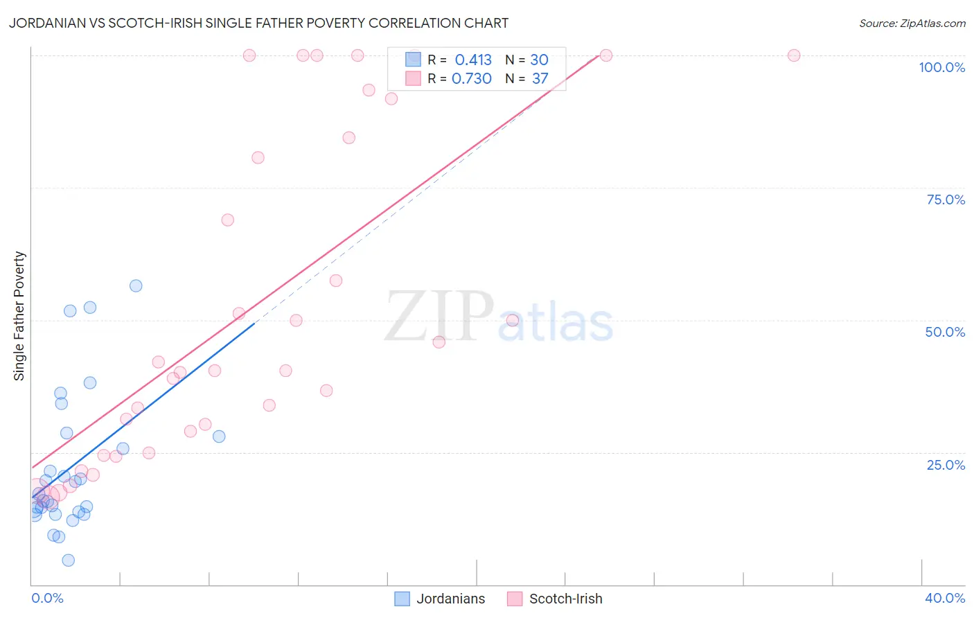 Jordanian vs Scotch-Irish Single Father Poverty Correlation Chart