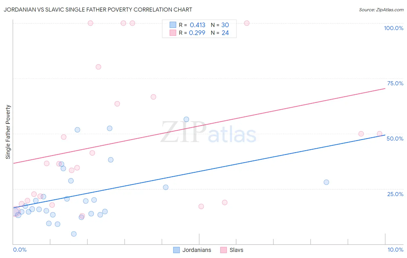 Jordanian vs Slavic Single Father Poverty Correlation Chart