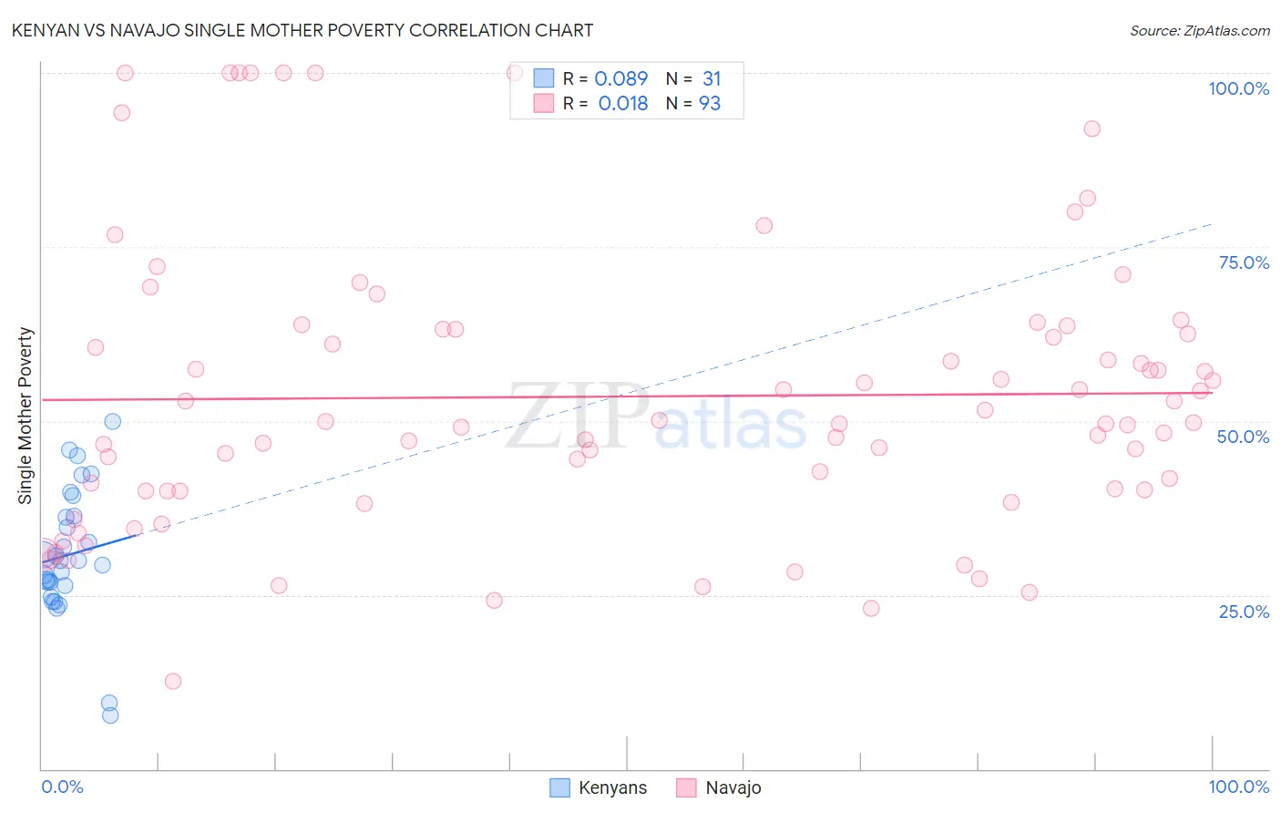 Kenyan vs Navajo Single Mother Poverty Correlation Chart