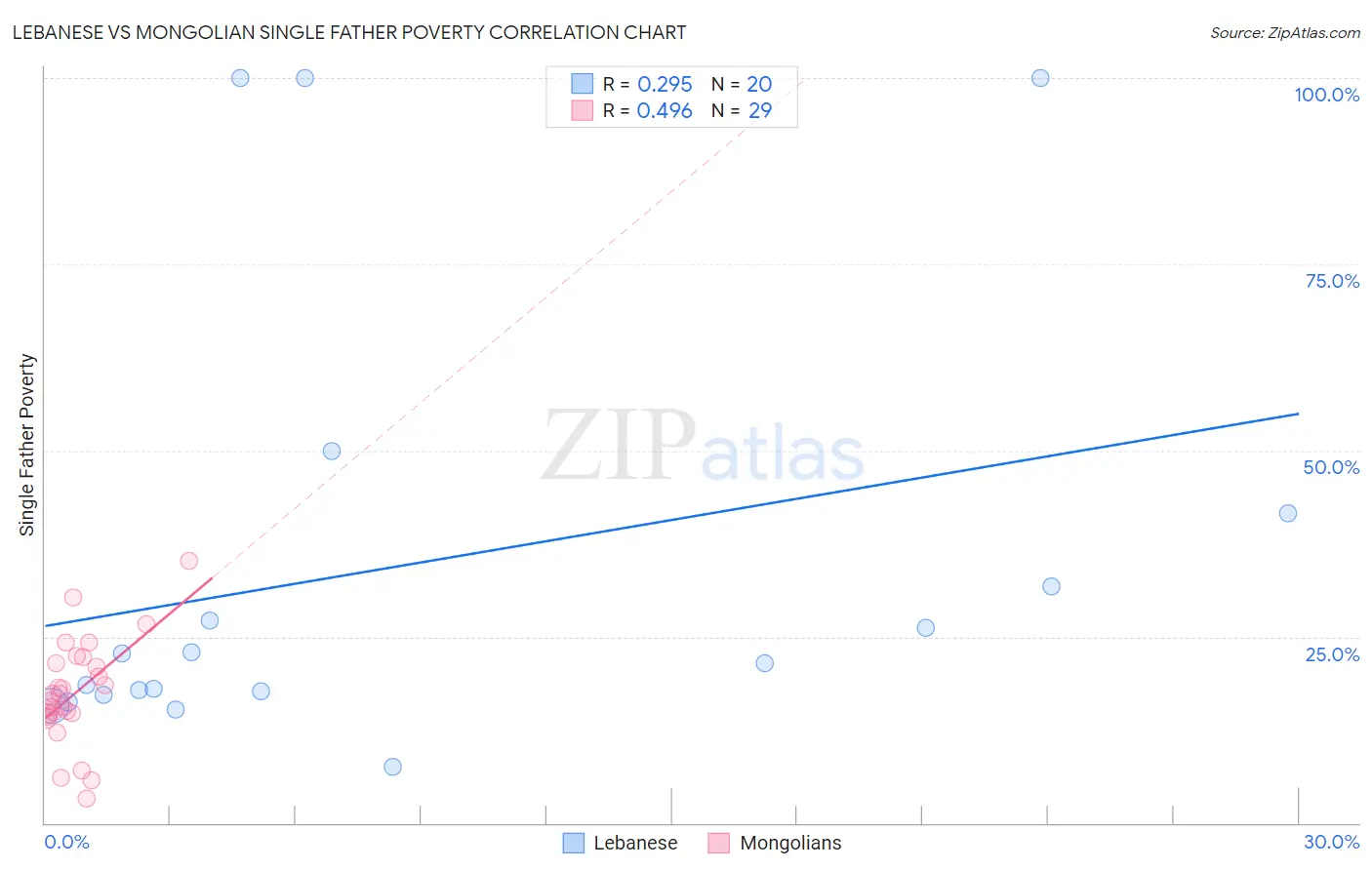 Lebanese vs Mongolian Single Father Poverty Correlation Chart
