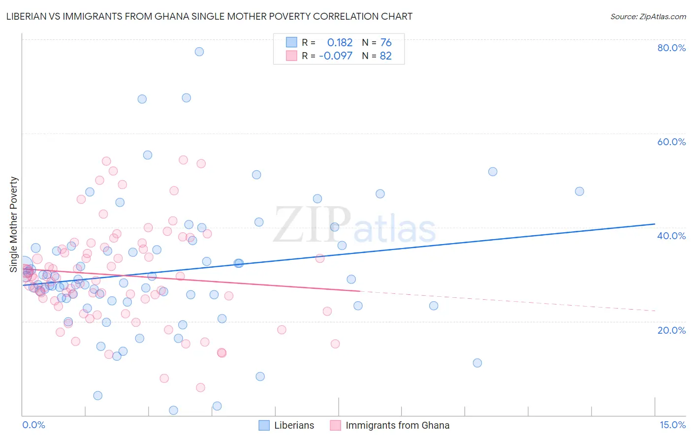 Liberian vs Immigrants from Ghana Single Mother Poverty Correlation Chart