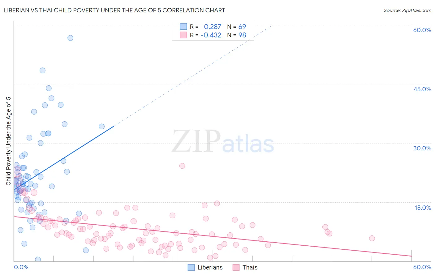 Liberian vs Thai Child Poverty Under the Age of 5 Correlation Chart