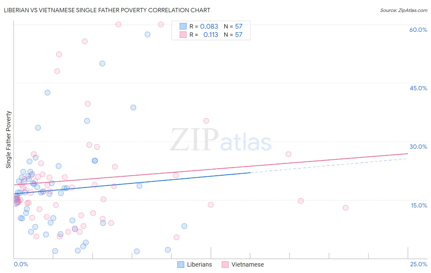 Liberian vs Vietnamese Single Father Poverty Correlation Chart