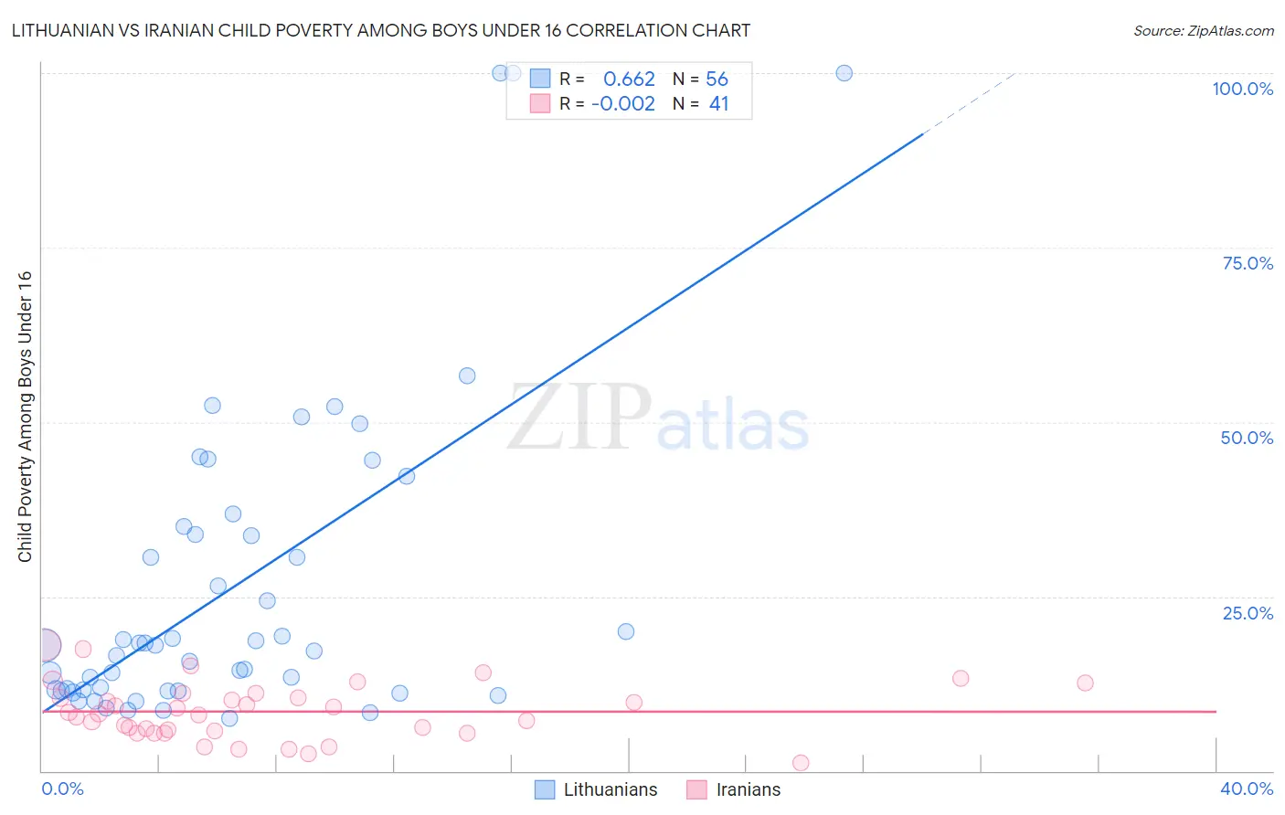 Lithuanian vs Iranian Child Poverty Among Boys Under 16 Correlation Chart