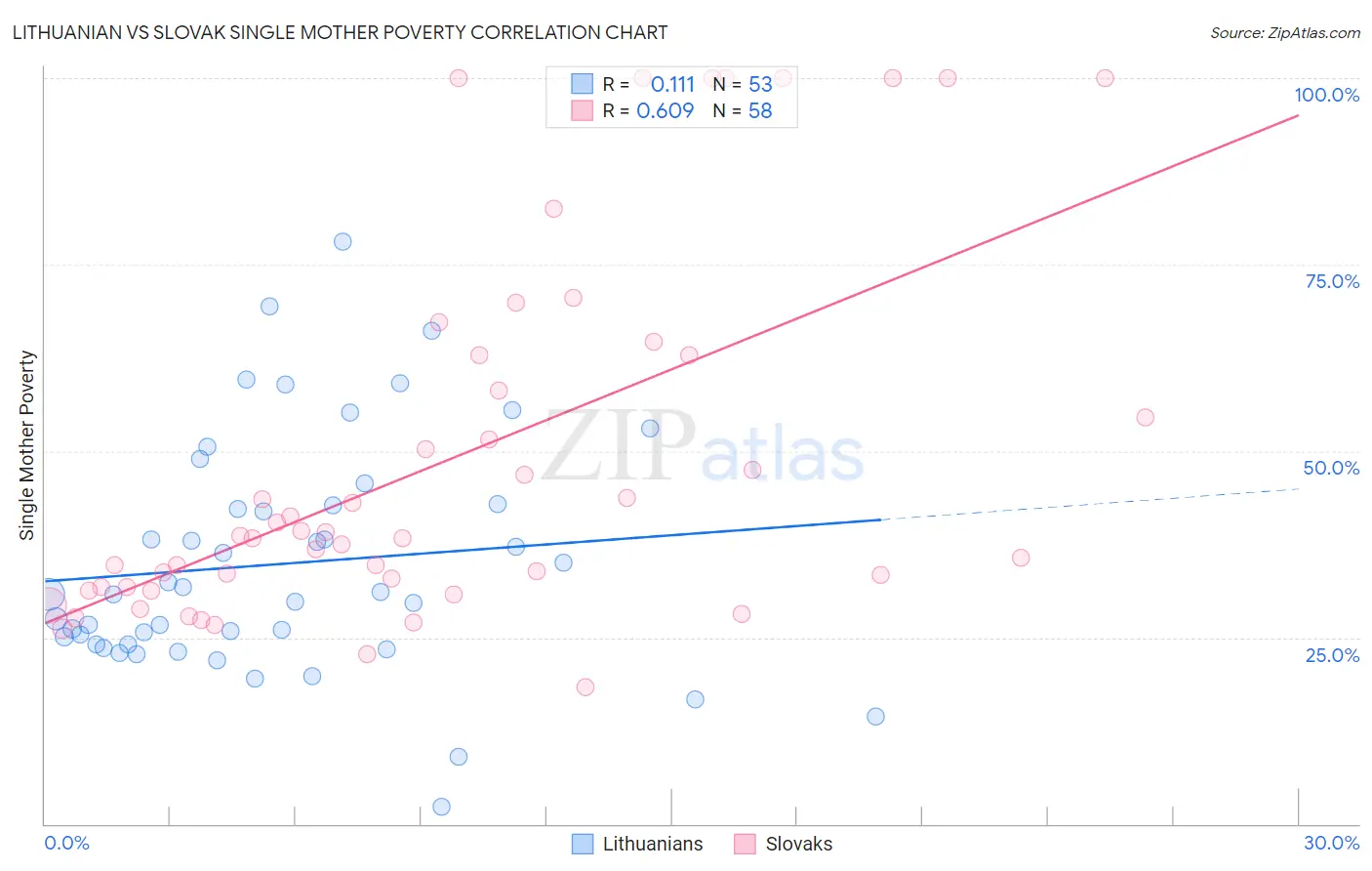 Lithuanian vs Slovak Single Mother Poverty Correlation Chart