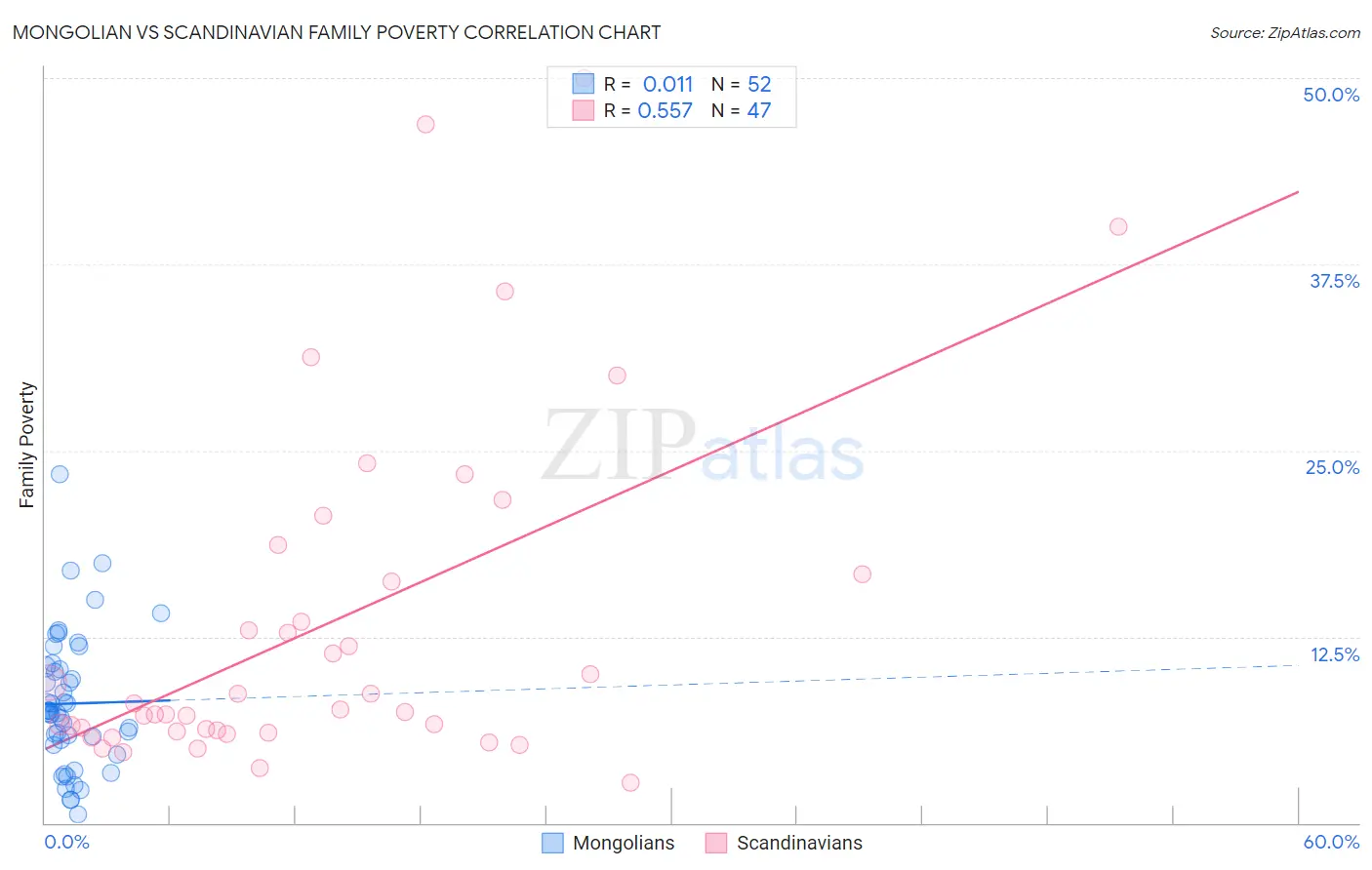 Mongolian vs Scandinavian Family Poverty Correlation Chart