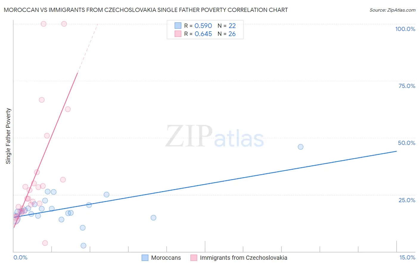 Moroccan vs Immigrants from Czechoslovakia Single Father Poverty Correlation Chart
