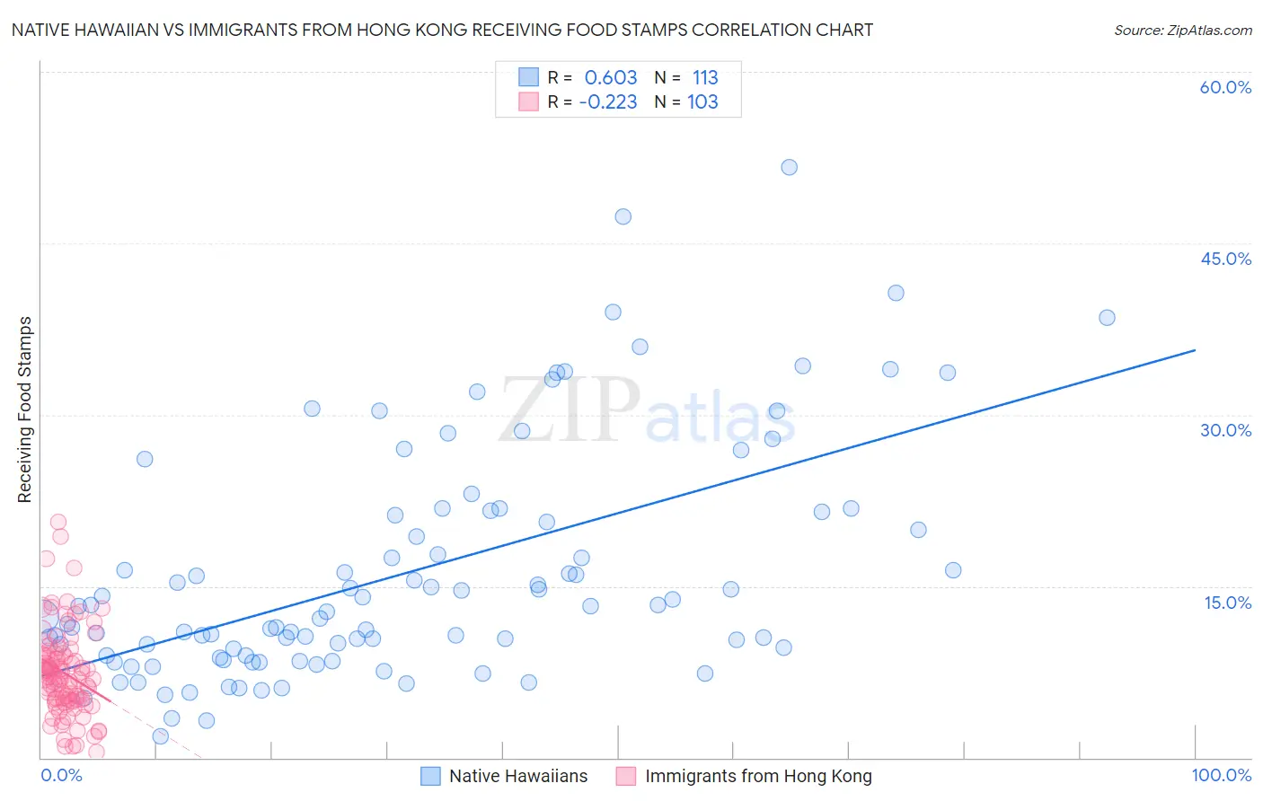 Native Hawaiian vs Immigrants from Hong Kong Receiving Food Stamps Correlation Chart