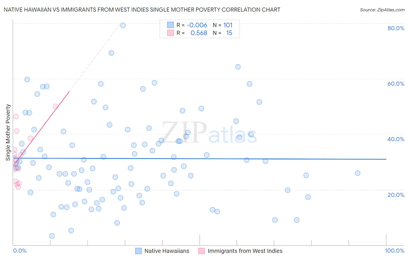 Native Hawaiian vs Immigrants from West Indies Single Mother Poverty Correlation Chart