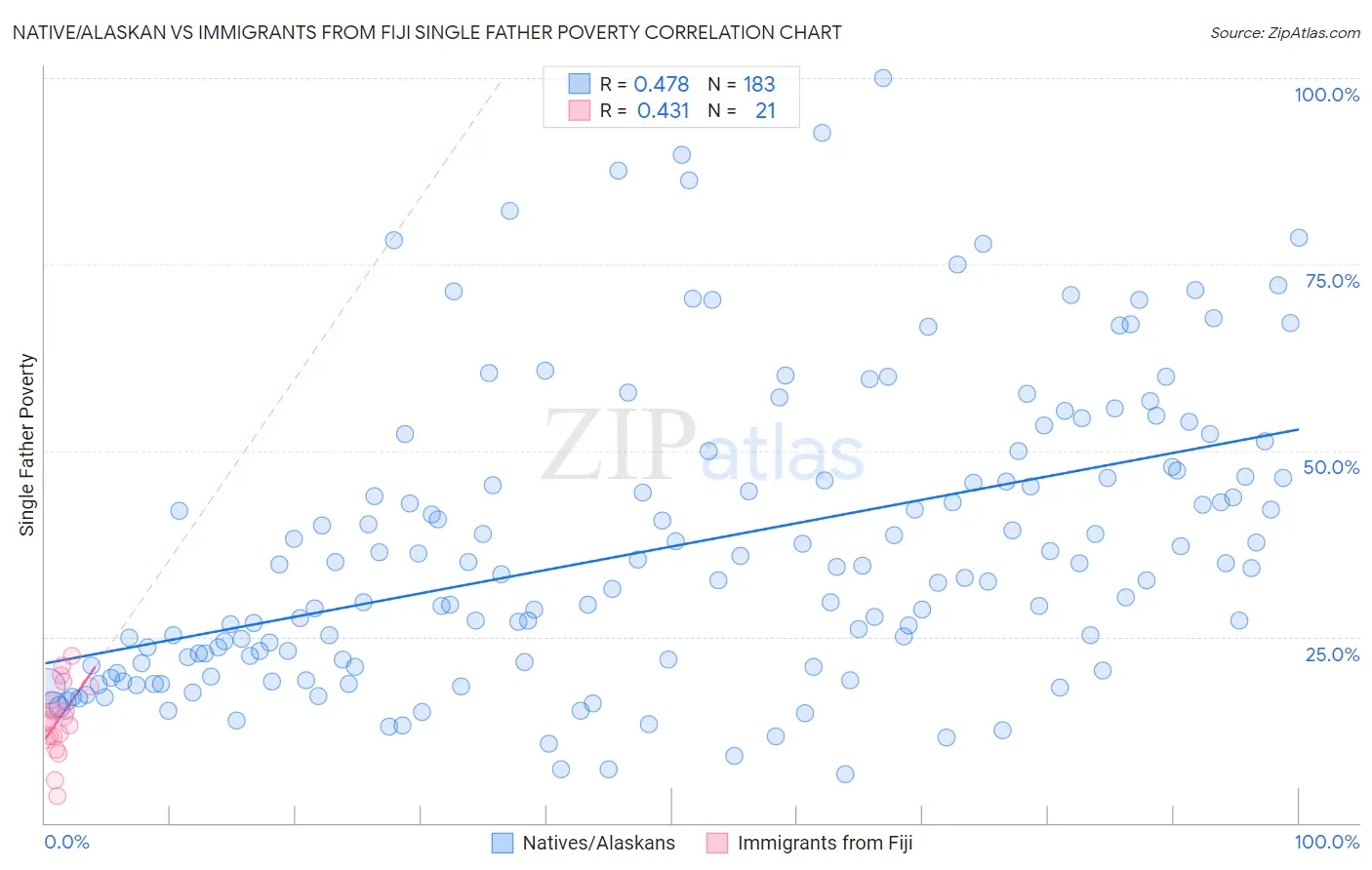 Native/Alaskan vs Immigrants from Fiji Single Father Poverty Correlation Chart