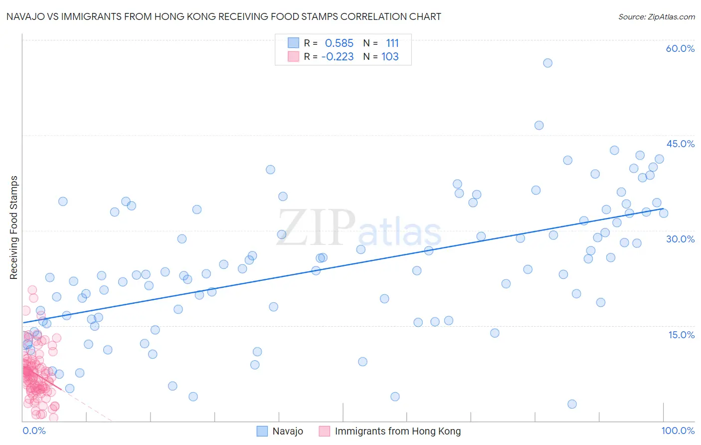 Navajo vs Immigrants from Hong Kong Receiving Food Stamps Correlation Chart