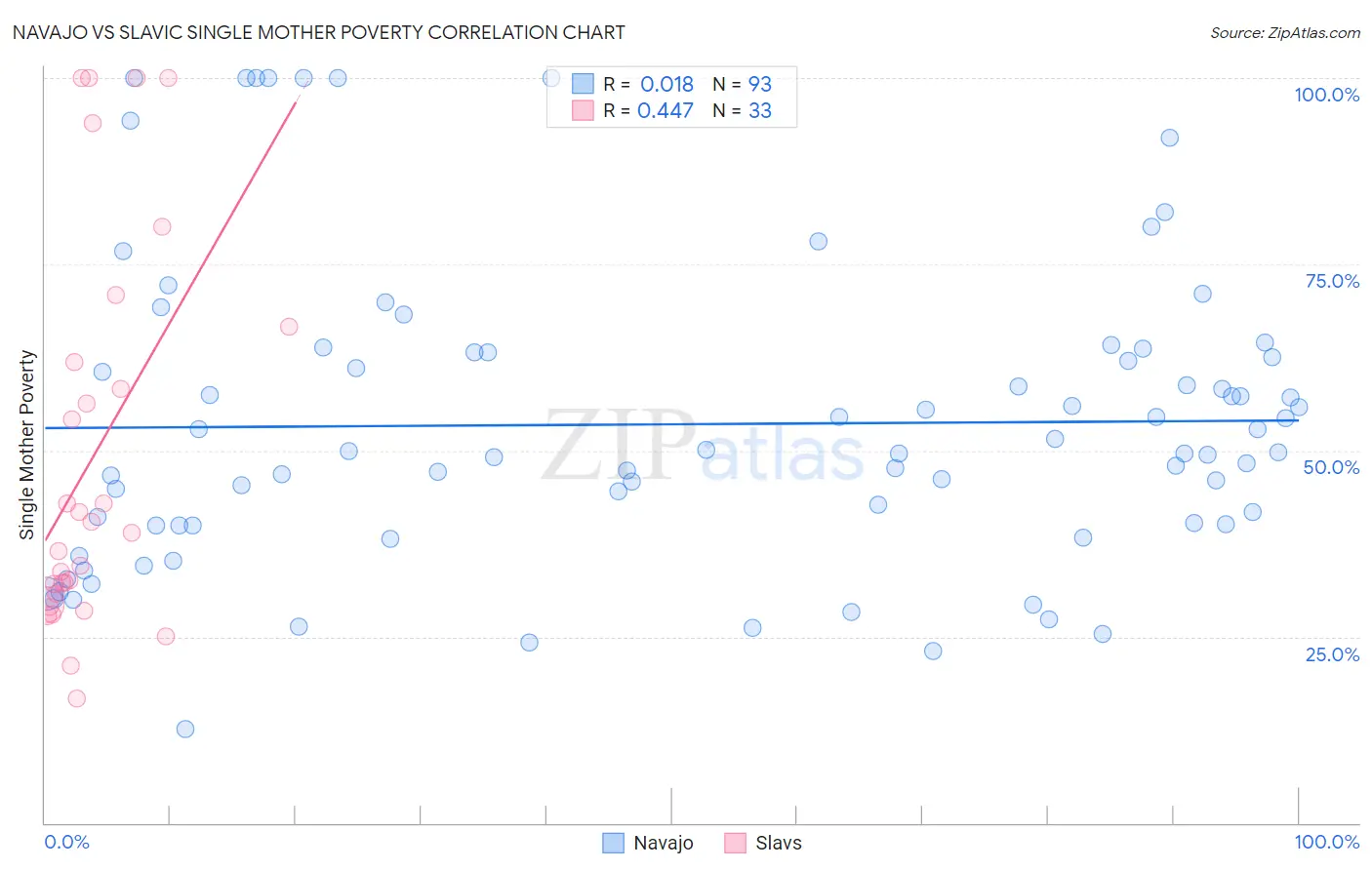 Navajo vs Slavic Single Mother Poverty Correlation Chart