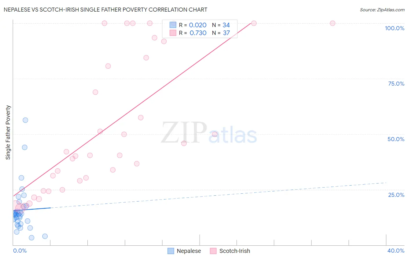 Nepalese vs Scotch-Irish Single Father Poverty Correlation Chart