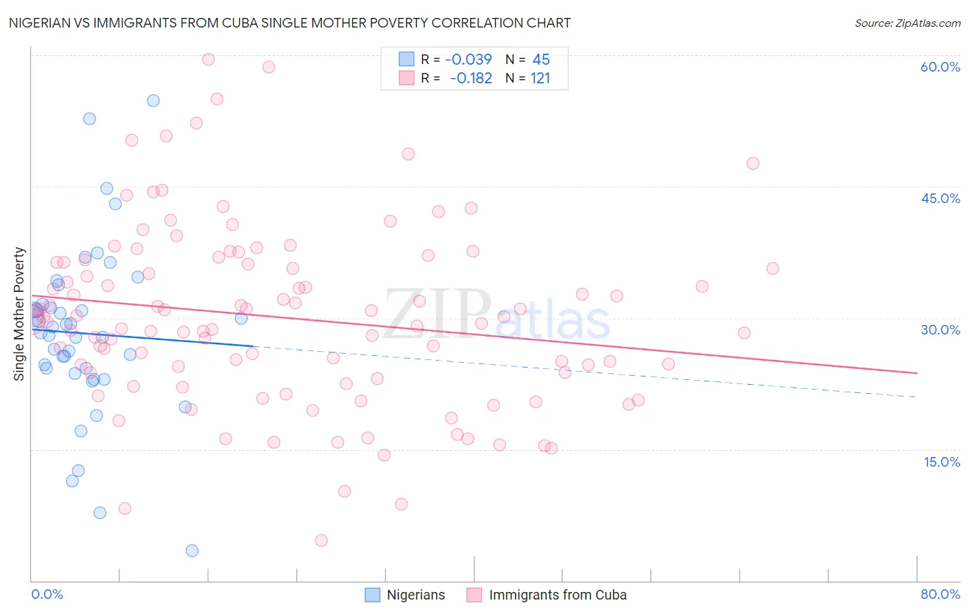 Nigerian vs Immigrants from Cuba Single Mother Poverty Correlation Chart