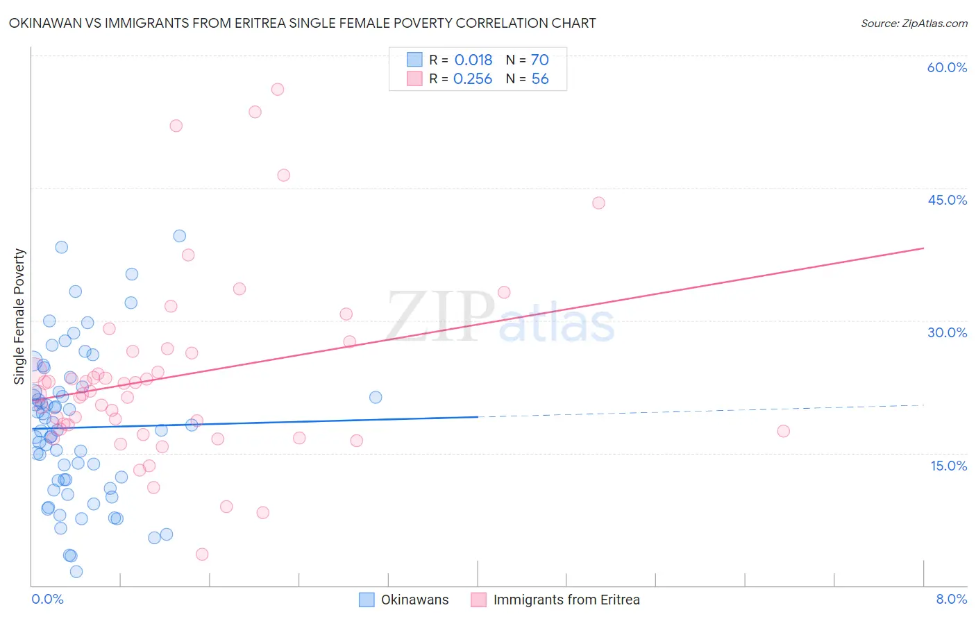 Okinawan vs Immigrants from Eritrea Single Female Poverty Correlation Chart