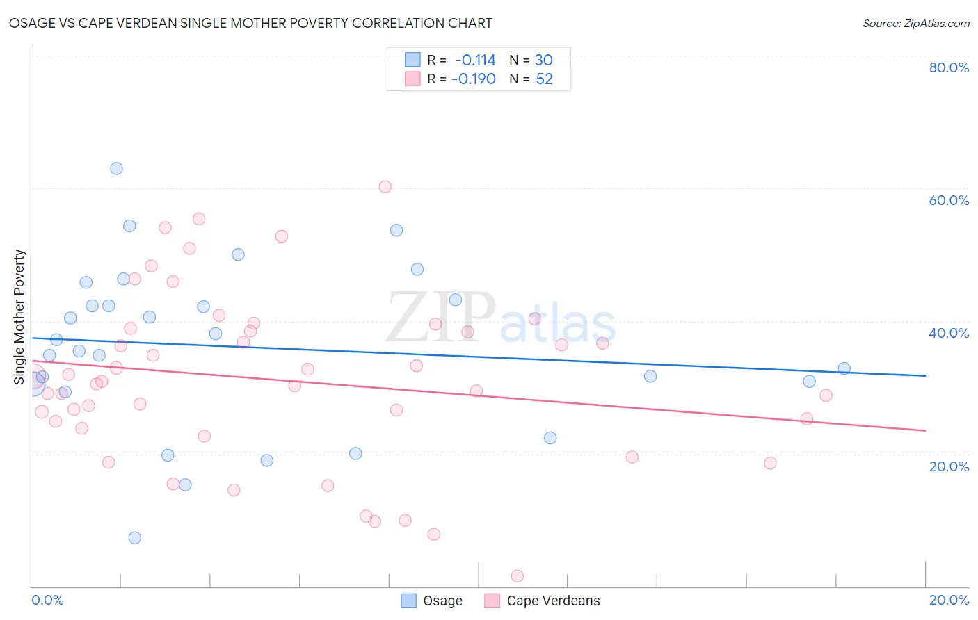 Osage vs Cape Verdean Single Mother Poverty Correlation Chart