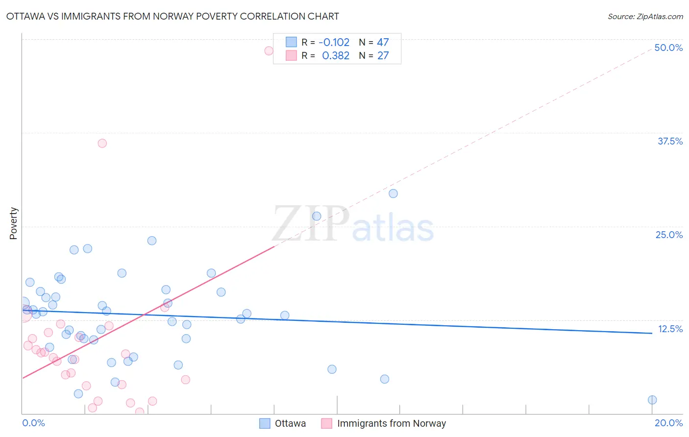 Ottawa vs Immigrants from Norway Poverty Correlation Chart