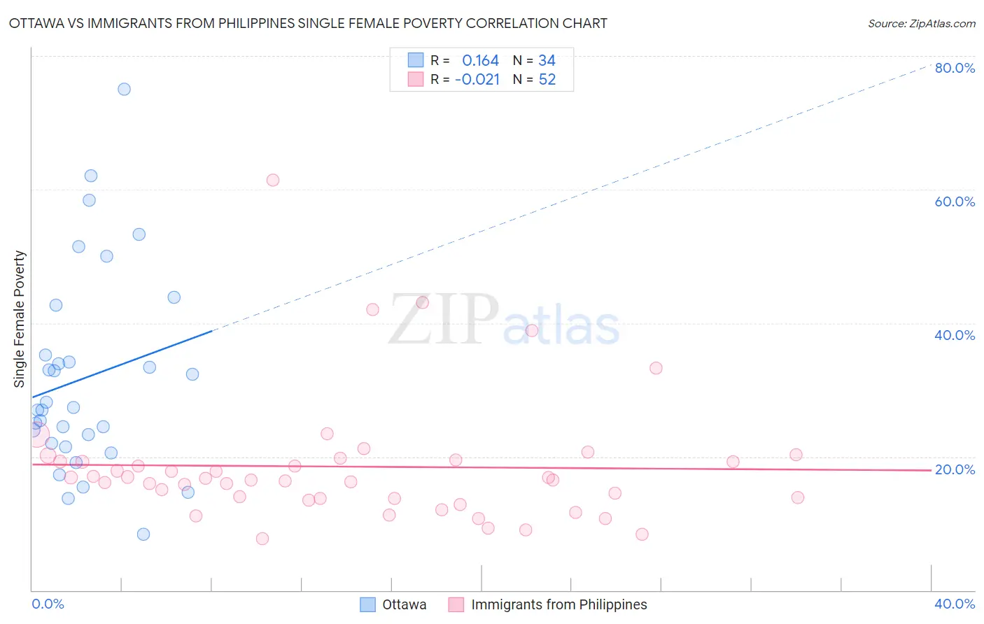 Ottawa vs Immigrants from Philippines Single Female Poverty Correlation Chart