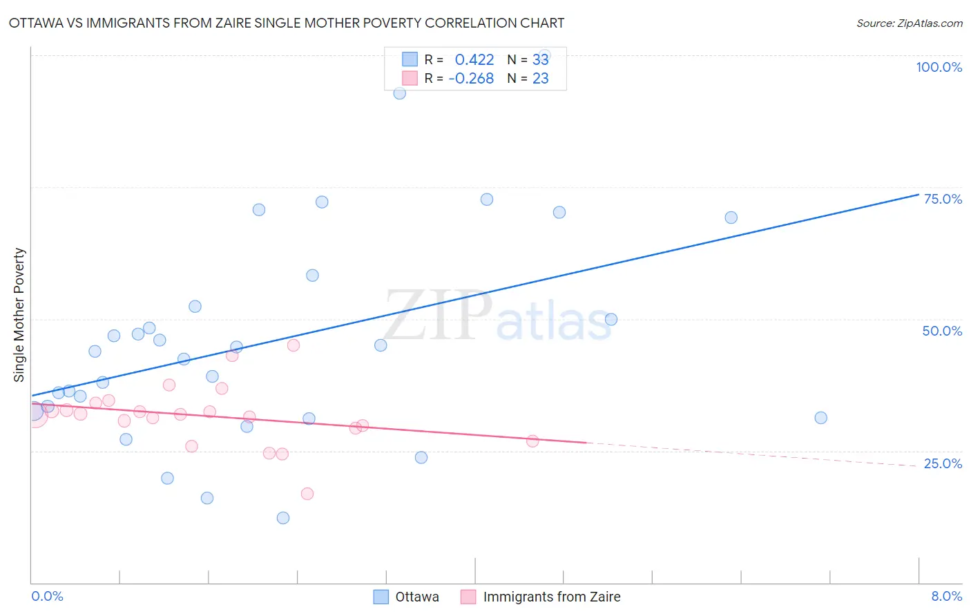 Ottawa vs Immigrants from Zaire Single Mother Poverty Correlation Chart