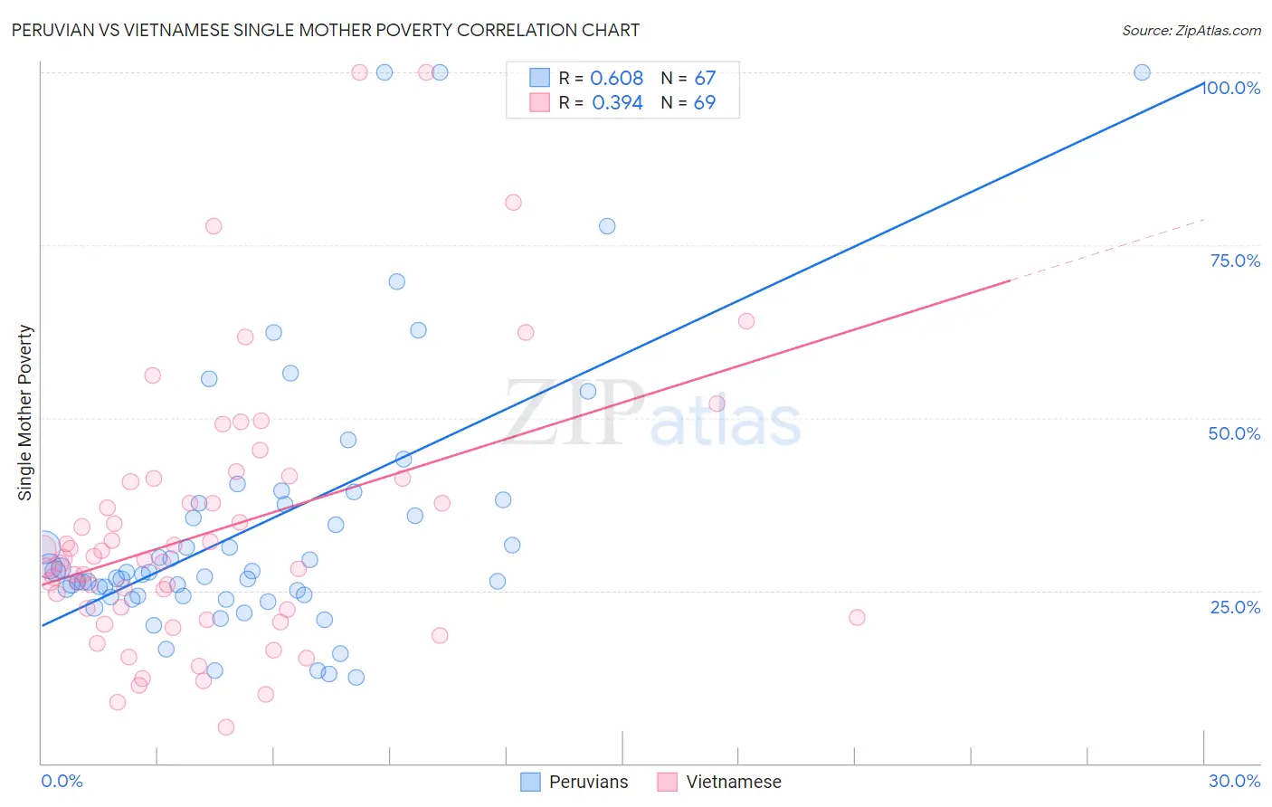 Peruvian vs Vietnamese Single Mother Poverty Correlation Chart