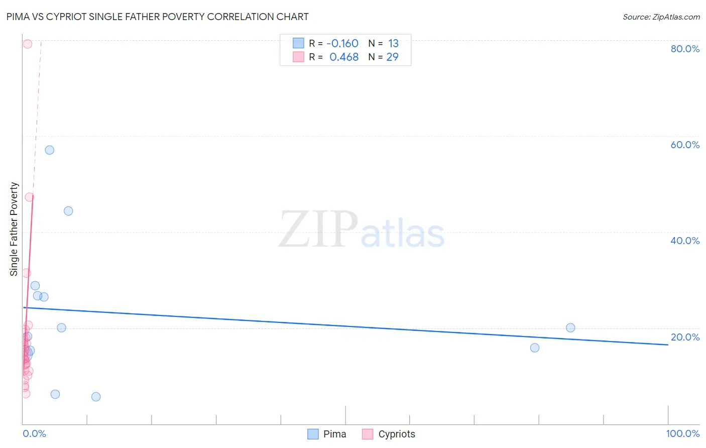 Pima vs Cypriot Single Father Poverty Correlation Chart